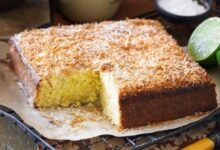 - نصف نفرده في صينية مدهونة بالسمن ونضغط عليه ليصبح متماسكًا.