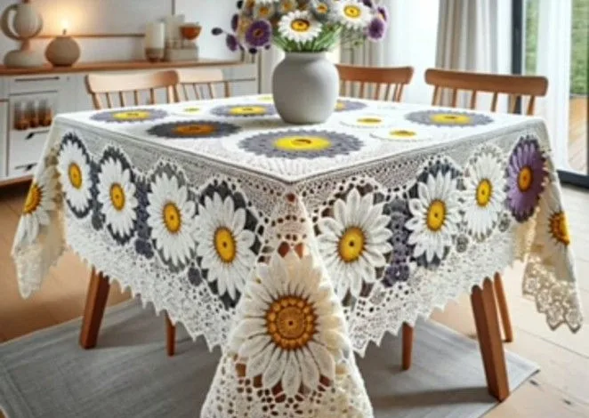 يمكنكِ تعديل عدد البتلات أو حجم المفرش حسب الرغبة، مما يجعل مفرش كروشيه للترابيزات الصغيرة قطعة مرنة وسهلة التخصيص.